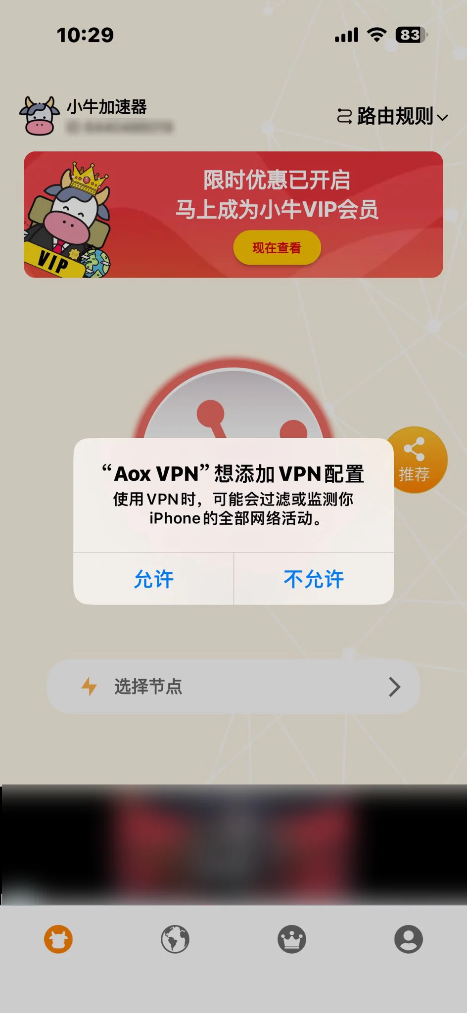 遇到此情况可能说明您的手机中在下载完成后,打开 app,出现选择是否将小牛加速器加入您 VPN 设置中,您选择了 “不允许”。解决办法: 先滑动彻底退出小牛加速器,重新进入,此时选择允许小牛加速器加入到您 VPN 设置中,您就可以正常使用 VPN 了。